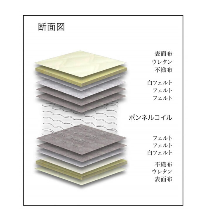 【マットレス】ボンネル ハード (グランツ) 体を支えるコイル数の密度を上げ、よりしっかりとしたハードなタッチに仕上げています。 【寝心地:かため】 ・シングル 970×1950×200mm 24,800円(税込) ・セミダブル 1200×1950×200mm 31,800円(税込) ・ダブル 1400×1950×200mm 38,800円(税込) ・ワイドダブル 1540×1950×200mm 45,800円(税込) 商品について問い合わせる