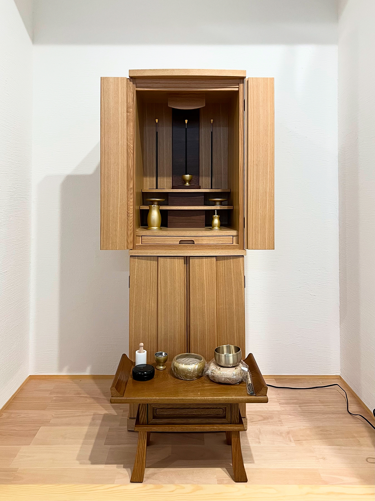 『家具調仏壇 タモ ナチュラル色』 納品日:2025年07月 ○様邸(富山県魚津市) ご新築のお宅にタモ材の『家具調仏壇』をお届けしてきました。 明るい仏間にモダンな家具調仏壇がとても良い感じでマッチしていました。 ありがとうございました。