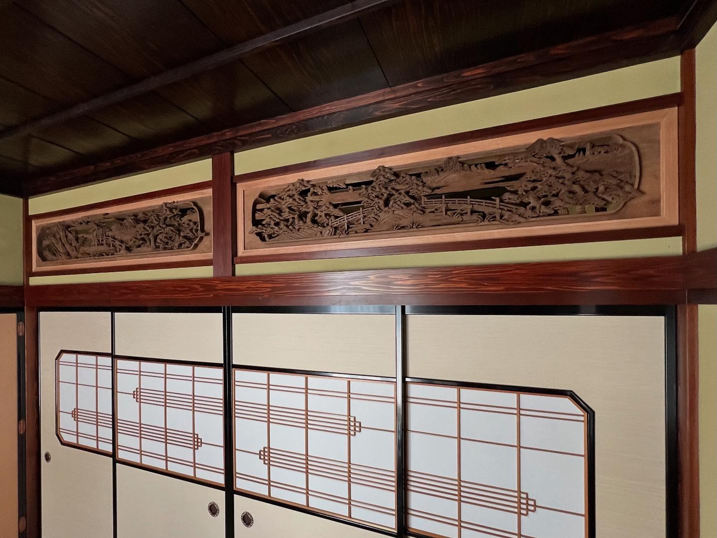 『彫刻欄間(近江八景)神代』 納品日:2025年08月 ○様邸(富山県滑川市) 神代の『彫刻欄間』を取り付けてきました。 漆塗りの和室に『近江八景の欄間』がとても良い感じでお客様も喜んでいらっしゃいました。 ありがとうございました😊